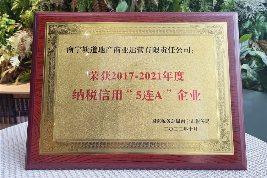 近日,軌道地產(chǎn)商業(yè)公司榮獲國(guó)家稅務(wù)總局南寧市稅務(wù)局授予的納稅信用“5連A”企業(yè)榮譽(yù)稱號(hào)。獲此殊榮,不僅是稅務(wù)機(jī)關(guān)對(duì)軌道地產(chǎn)商業(yè)公司稅務(wù)管理工作的充分肯定,更為軌道地產(chǎn)商業(yè)公司走高質(zhì)量發(fā)展之路提供了強(qiáng)有力的支撐。