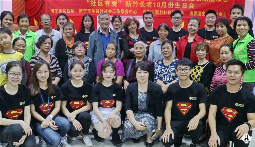 "祝你生日快樂!祝你生日快樂!" 祝福的歌聲和掌聲不斷響起來。2017 11 1 日下午,在青秀區(qū)新竹社區(qū),十幾個老人聚在社區(qū)的一間活動室里,參加 "社區(qū)有愛"新竹社區(qū)長者 10 月份生日會,一起慶祝生日。本次關(guān)愛社區(qū)老人公益活動由南寧市樂益行社會工作服務(wù)中心、新竹社區(qū)居委會和逸居公司團支部、中房會等聯(lián)合舉辦。